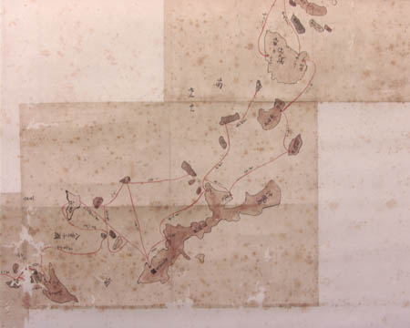 作図の目的は沿海航路を明らかにするためといわれている。北海道や本州北部の形は歪ん でいるが、朝鮮半島南部、沖縄諸島までの広範な海域が描かれている。沿海航路は朱線で、 距離は里数で表されている。駿河湾内には、清水から「豆州子浦エ十三里」とあり、掛塚 (竜洋町)、子浦(南伊豆町)、下田などが書き添えられている。陸地には国名や国境、主 な町や港が記載されている。